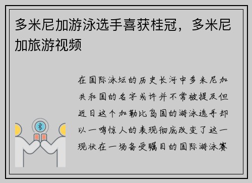 在国际泳坛的历史长河中,多米尼加共和国的名字或许并不常被提及,但近日,这个加勒比岛国的游泳选手却以一鸣惊人的表现,彻底改变了这一现状。在一场备受瞩目的国际游泳赛事中,多米尼加选手以出色的表现摘得桂冠,不仅为国争光,更在全球泳坛掀起了一股“多米尼加旋风”。这位选手的名字,也随之传遍了世界各地的体育新闻头条。
